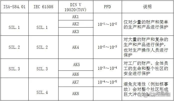 Secundum ad IEC vexillum, dividitur in Sil1-sil4 ex humili ad altum, sil1-Sil3 ex Esaj 84.01 et Ak1-Ai8 ex humili ad altum secundum Din Vde0804 et Ai8. Et correspondentes necessitudinem inter eos, ut sequitur.